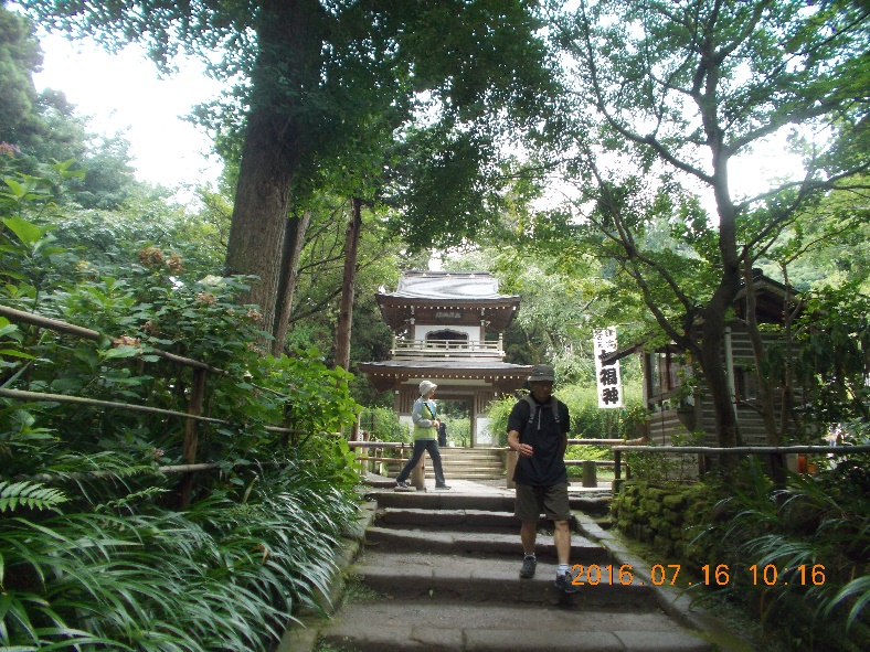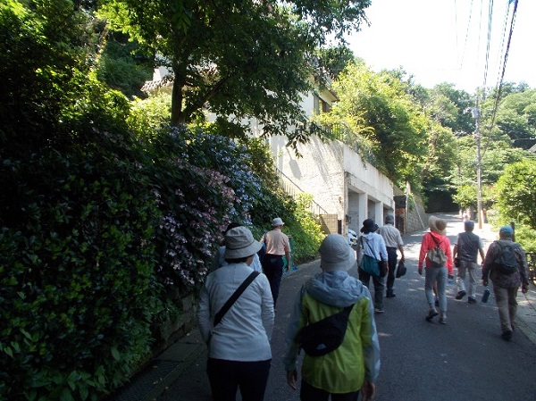近年神社の境内には「アジサイ」が沢山植え揃えられ、後2~3年位で鎌倉のアジサイの名所になるのではないでしょうか。花はもうすでに終わり、来年の為にきれいに剪定され、世話をされている方たちのご苦労が伺われます。これから、葛原岡ハイキングコースを浄智寺に向けて山道へ。雨後のぬかるみが気になりましたが、誰一人滑ることなく、浄智寺に到着。ここの参道のアジサイもきれいに剪定されていました。