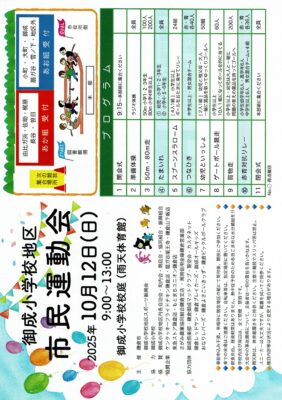 10月12日(日)に御成小学校の校庭で市民運動会が開催されます。