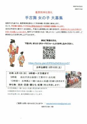 6月1日(日)に開催される葛原岡神社の手古舞に参加する女の子を募集しています。5月10日締め切りです。
