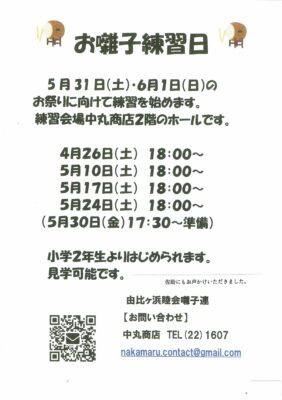 葛原岡神社の子供神輿に並走する車に乗車するお囃子の参加者を募集しています。すでに練習は始まっていますが、今からでも参加可能です。