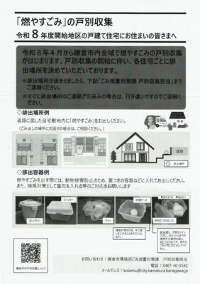 令和8年度開始地区の戸建て住宅に住まわれている皆さんへのお知らせです。来年の3月にかけて市職員が一軒ずつ訪問し、排出場所の確認に伺います。