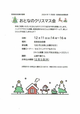 申込は佐助地区民生委員:藤田かがり23-8414、塚原盛24-6168まで。