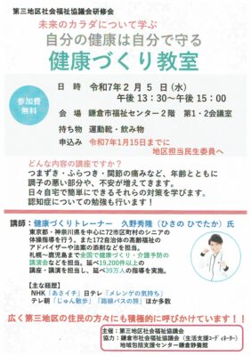 未来のカラダについて学ぶ 自分の健康は自分で守る 健康づくり教室が開催されます。