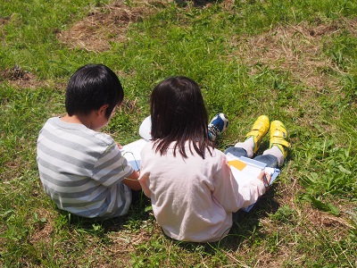 フェンス沿いの植物に気を取られていて、御谷の中までたどり着くころには日も高くなってきました。終了時間もあとわずかなところで、最後に自分たちが調べた草花が、御谷の中の方ではどの辺りにどのように生えているか探してみよう、ということで、初めに配られた地図に印をつけていきました。それを見てみると、周りに草の多いところでは植物はできるだけ背を高く伸ばし、お日様が当たるように工夫をしているようでした。本来ならタンポポも本当に短く、地面にほど近いところで花を咲かすのですが、競争率の高い場所では、切磋琢磨していかなくてはならないのでしょう。冒頭で岩田先生がお話しくださった動物についての懸念事項にもつながることですが、人間の手で持ってきた外来種(鳥でいうとガビチョウなど)の台頭により、もともと鎌倉に存在していた種が脅かされているというのが現状です。動物、植物にかかわらず、生き物の生態系を尊重し守っていこうという鎌倉風致保存会の方々の意志が、将来を担うこどもたちに少しでも伝わればよいな、と思った一日でした。