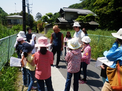 昨年度からの役員2名と、新しく加わった2名の役員とでおこなう最初の行事、「春の自然探索」は、五月晴れというよりは夏の日差しのような素晴らしい快晴の朝に、鎌倉の秘密の自然の宝のひとつともいえる御谷で始まりました。昨年も磯遊びの会でお世話になった鎌倉風致保存会の岩田先生を講師にお迎えし、鎌倉に生息する植物や動物のお話を聞かせていただきました。