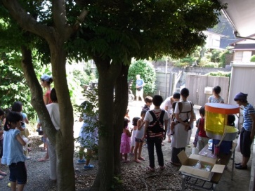 夏休み企画第2弾は、佐助在住の小原勉先生を講師にお迎えして行われました。小原さんは、セミ一筋○十年。NPO法人「おもしろ科学探検工房」の「セミの羽化観察」主任指導員とあって、セミのことなら何でもご存知のセミ博士です。雨天時は羽化しないとあって、暫く天気予報から目を離せませんでしたが、皆の願いが通じてか当日は絶好の羽化日和となりました。プロジェクターを使用した小原先生による本格的なセミの生態の講義は、子どもはもちろん、付き添いの保護者からも大好評。オリエンテーション後の観察会では、神秘的なセミの羽化の様子に、子どもも大人も固唾をのんで見守っていました。
