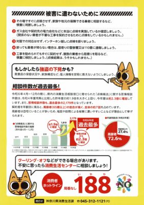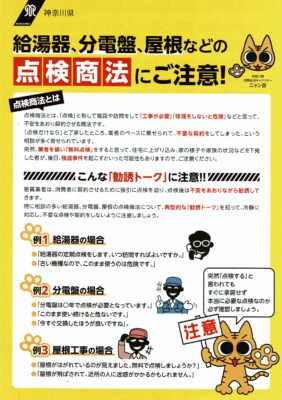 点検商法詐欺の注意について神奈川県からパンフレットが送られてきました