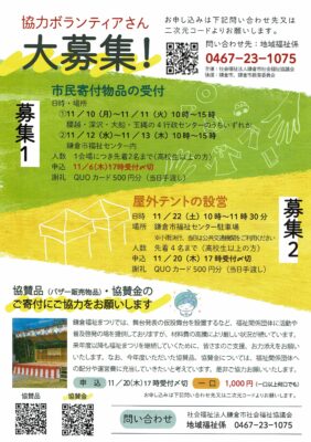 鎌倉福祉まつりが11月23日(日)に 福祉センターで開催されます。 多くの方の来場をお待ちしております。