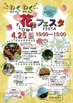 4月25日(土)、鎌倉中央公園で 「わくわく花フェスタ」が開催されます。詳細は下記のパンフレットをご覧ください。